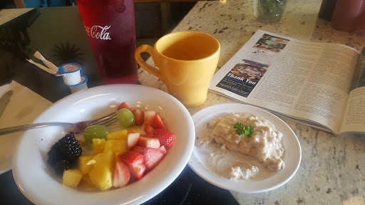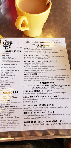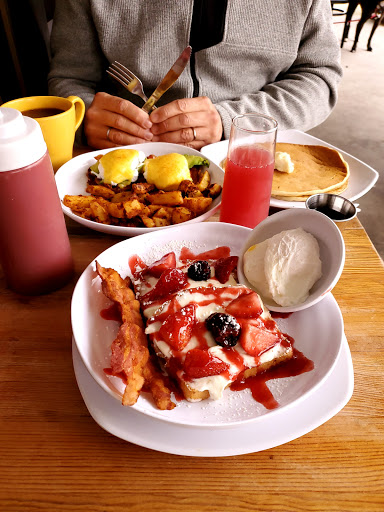 My goodness, those cinna-swirl pancakes, they dont even need the syrup. The benedicts, especially the Cali. benedict is amazing. The cheese grits, mmmm. The fresh squeezed OJ is a perfect, liquid naval orange. The coffee is wonderful. The service is even always top-notch. I love it. So youre not surprised, make sure that if you go at a prime time, youre ready to wait for a bit. Just know its worth it!!