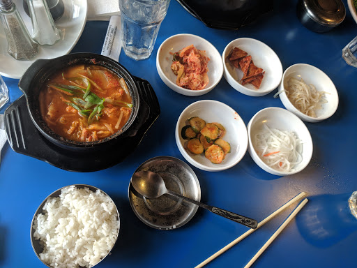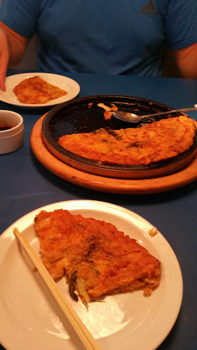 Delicious korean food. Try the kimchi pancake for an appetizer or dumpling soup. I had the bibimbap stone bowl for an main dish, came with sizzling rice topped with different marinated veggies, tofu and a fried egg on top. Worth finding this place!
