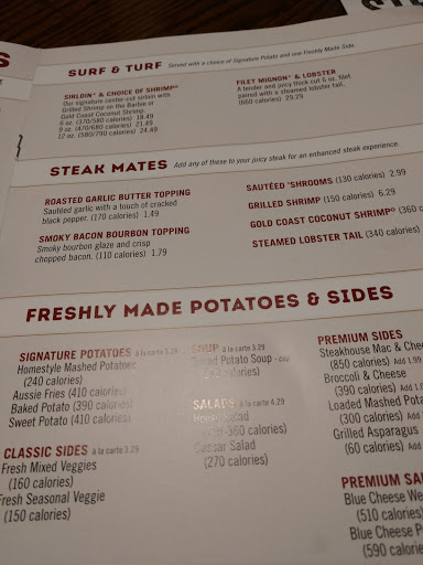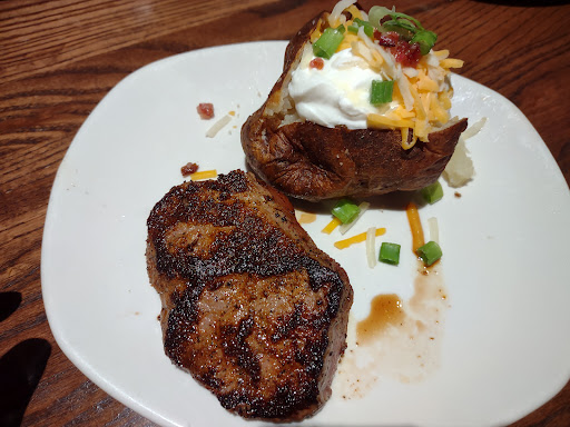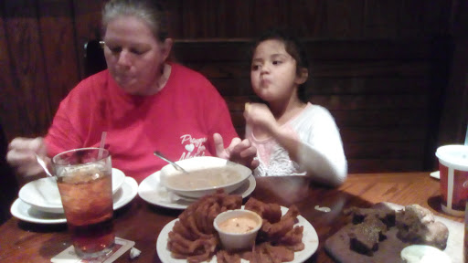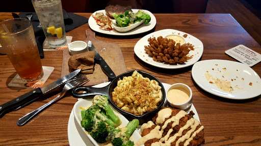 This used to be my favorite restaurant. They must have changed management or something because I have not gotten a decent meal from there in the last year. The ribs used to be "fall off the bone" tender. Now they are tough and under-cooked. The portion of broccoli is larger than the steak, which is really thin compared to what it used to be. The last time I ordered take out, I asked for extra sauce for the blooming onion ($9, by the way). I got 2 containers, but they were only half full. That was the last straw, they will get no more of my business. Texas Roadhouse is much better - and cheaper!