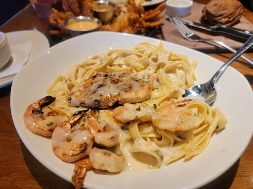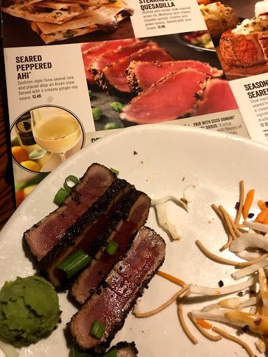Did the online "put your name on the list", arrived on time (7:30) & was told 20 minutes. We were a group of 8 but put our name down earlier in the morning. Finally was seated at 8:45!!! Then it when we ordered, food came out quickly but too quickly. It was disgusting. Fish was dry & over seasoned, side item mushrooms were so cold unable to eat, baked potatoes dry and cold, bacon was cold and no longer crunchy, & no refills on our drinks. At 8:45 the place was about empty & it was after rush hour service. Everyone looked like they were just ready to leave. Previous experience was just as bad but it was a friends birthday & this was her choice but no more Outback for me.