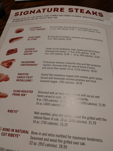 Just left Outback with my family of 13.Abolutely the worst experience I have ever had at a steakhouse. We order 4 porterhouse steaks. 3 of the 4 came out wrong. Ordered a ribeye came out over cooked. We send back one of the porterhouse steaks. By the time it came back everyone had finished their meal and guess what it was wrong AGAIN. Should of known it wasnt going to be correct when the food came out the server auctioned off the plates because he was clueless where they went. Second time this has happened at this restaurant. By the way the manager never came to our table.