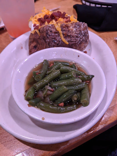 This is a popular spot. I choose to eat here based on previous experiences at a Georgia location. Must have been because of the rain today the place was packed! Hard time finding single seating even at bar area. But a few minutes a spot freed up. Their rolls are delicious as is their cinnamon butter. For my meal I chose a 8oz sirloin with house salad and sweet potato. Ordered the steak medium to medium well. Salad was quick to show up but my server had forgotten to ensure I had silverware. Tracked someone down eventually so I could eat. Steak arrived a while later and upon cutting steak open it was apparently it was well done and tough. Politely asked to have it sent back. Server was gracious as well as the manager who offered me a side dish on the house for the wait. I declined as I wasnt that hungry but appreciated the gesture. Second steak arrived and it was more medium well/well done as after 15 seconds of being cut it turned dark brown. Chose this place as I thought it would be easy good quality steak but cant say I was pleased with my purchase. If you order a steak here and want any flavor highly recommend ordering medium or less otherwise youll have a tough steak. Maybe it was just them being busy. Other than overcooked steak meal was good, they have amazing sweet potatoes and service was acceptable.