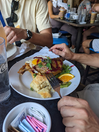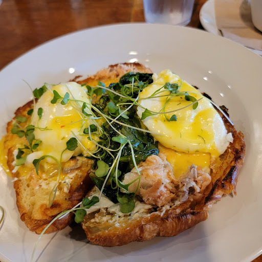 Spinach feta grill was awesome!! The poached eggs were done perfectly so the yoke dribbled all over the wonderful bread. The food was warm and served appealingly. The service was excellent. My husband had the special of the day omelet with a peach arugula pesto on top - yummy. I highly recommend The Basics for breakfast or brunch.