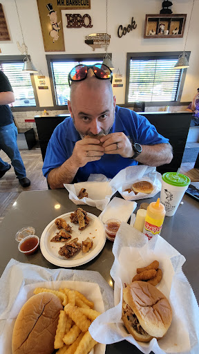 We stayed the night at a nearby hotel and I googled restaurants near by and Mr. Barbecue came up. After reading some of the reviews we decided to try it out! We were so glad we did! The food was really good, nice southern BBQ. I love the old feel of ordering at the counter and taking your food on a tray to your table. The only reason I give them a 4 star, is we ordered a slice pate, 3 rib plates and 2- 2pc chicken plates, the last meals to come out were the chicken and those were for the kiddos, my sons didnt arrive until everyone was done eating :(. Although it was hot and fresh, the wait was hard for him and everyone was sharing with him, because he was hungry.