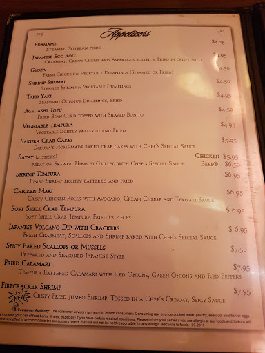 You owe it to yourself to try Sakura Japanese Restaurant. Youll be glad you did.