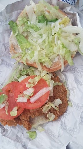 Food was okay. I mean, its still Sonic fast food. What shocked me was the indoor seating and how nice it was. Real flowers in the vases, tvs on the walls, ect. Even the outdoor seating was nice; its covered and has fans and solid tables instead of those blue ones with the holes. Overall, a very pleasant experience.