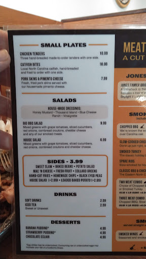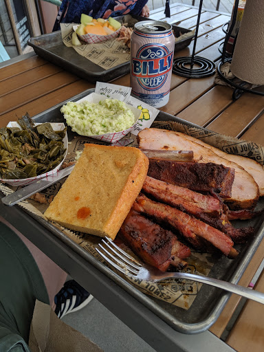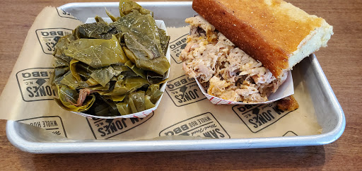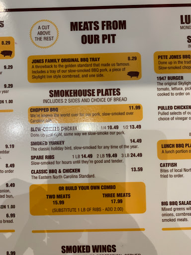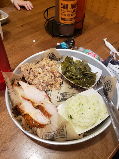 The BBQ is excellent, they definitely brought the taste over from the skylight in. Sadly thats it. The slaw is bland, the cornbread was ultra hard on the outside and undercooked in the middle and tasted really bad. And I got all this for almost $10 and thats without a drink. And that was one of the cheapest things there. The portions were laughable, you could hear everything slide around in the big to go tray. So you knew you werent getting your moneys worth. I ate it all and was still hungry. Every BBQ place from Greenville, Winterville, and Ayden will give you larges portions cheaper than what youll pay here. And for the most part, they will be better. That only thing good at Sam Jones is the BBQ, but its not worth the money just to be hungry again a few minutes later. The service was awkward. Most of them were nice, but you could feel that they really just wanted you to not be there at all... And I was the only one in line and they werent busy. Great way to make your customers feel welcomed. Save yourself some money and go to Parkers, Moores, or Ms Bs, you send alot less and have some for leftovers. This is not a very affordable restaurant for families.