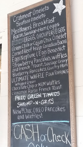 Had breakfast the other day. The wait was really NOT worth it. My LARGE juice was just a small 8 oz but no big deal. The place is a little out dated needs remodeling for sure example I felt like I was eating outdoors with their picnic tables that are covered in cheap vinyl table cloth the bar stools are even covered with it. The food was okay not great just okay. I had the shmrip and cheese omelette which consisted of cheap store bought shrimp and shredded cheese. Dont get me started on their instant grits with no flavor and if you get it on the side, you get a very small bowl that will cost $2.25. I hate to admit it but Waffle House would have been better.