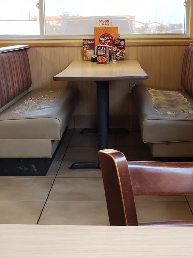 Husband and I visited this Huddle House location on 5/22/16. When we first entered the restaurant part of it was sectioned off for cleaning which was good, we found a seat and was picking up the menu which was sticky, I asked our server to please clean the menus, our server moved us into the section that had been recently cleaned which was fine also. We placed our orders received our drinks and waited 45 minutes for our dinner. Dinner was finally brought to our table, I had the chicken pot pie, it was cold and congealed and just slopped in the bowl with its contents all over dripping down the sides. Informed the server that it was cold and that I wasnt a pig waiting to be fed slop by the way it was presented, server called another server over and he said well the bowls hot I told him well the food isnt. Hubbys order was completely wrong also, the excuse was that they had a new cook in training.....hmmm thats my fault how?? The staff was to busy or worried about watching the ballgame than taking care of the customers and going out to smoke. We will not be back to this location....."Big F " for the grade.