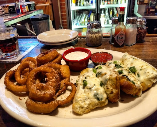 The service was slow but I could tell it was the person that waited on us. Im not sure he could help it though. We asked about specials and were told there werent any and I could tell the waiter was either new or just really unfamiliar with the menu. After ordering we discovered the specials in the back of the drink menu. There were app specials that were specific to the bar only too. The wings were good but kinda small. The sweet potato bites were really unique and very good, probably the best thing I ate. The chicago 7 calzone was good but was not the best Ive ever had. It was kind of dry. The screwdriver was the special for $3.50 and was kinda watered down. The amber Manhattan had a fair amount of liquor in it and was pretty decent but again not the best Ive ever had. If I had were in the area again, I might would eat here again because the prices and specials were pretty reasonable but it wouldnt be my first choice.