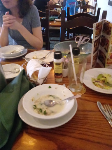 Provides a unique "family" atmosphere (whether or not its authentic is beside the point) with interesting textures and decorations scattered throughout the establishment. The food is tasty and plentiful (dont eat too much salad) and the prices are reasonable. I enjoy the pastas, and who can forget the salad and breadsticks which come included with most entrees! A great place for the family or a date night. I always look forward to going there.