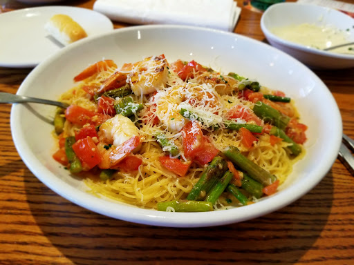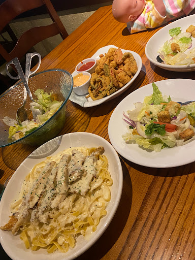The food was ok The drinks sucked. (Got a piña colada & a margarita) & the waiters...even worse. We were understanding of the wait time because they are short in staff but when our waiter finally came he just stood in front of us like we were bothering him and stared at us. We were like umm ok, hi....?... And then he asks "you guys gonna get anything to drink?" Like ok hi how are you thanks for joining us ? " Nothing. Never going back. Weve been to other olive gardens out of state and they are amazing. This is a let down.
