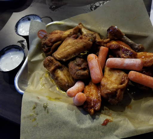 Very popular place to hang out and snack on wings and drink beer. Family friendly. Big groups accommodating. Noisy. Lots of parking and happy food. Specializing in all types of wings. They have take out available.