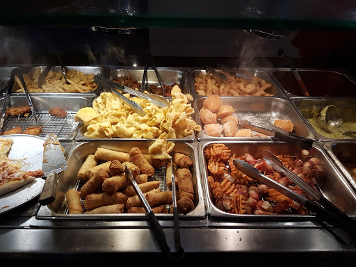 I eat there regularly and find the food hot and plentiful. They have a lot of chicken cook multiple ways. They also have a tray of duck breast, soups, a large dessert selection, custard machine, a Mongolian BBQ with a large variety of selections. The Price you pay is under $10 and I see a lot of University student eating there on weekends.