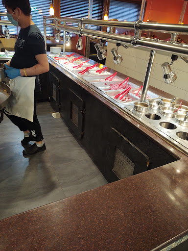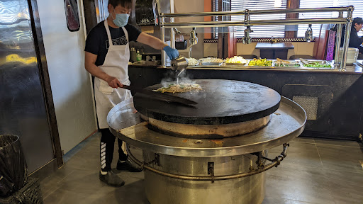 when arriving at 8:45pm, they advised us they do not close till 10pm and would add hot food as needed. They never added or replenished the empty items, the Mongolian was good, but the cook was very crabby. The most disturbing was that they began cleaning the restaurant 1 hr and 15 minutes before closing. It was the most unrelaxing experience ever with all the window cleaning(even stood on tables to wash windows and then didnt clean the table), vacuuming, washing the floors(made them so slippery was unsafe to walk on)even cleaned the condiments off our table. Nobody could talk English to us and still charged us full price for a buffet that was 1/2 left and very disruptive environment. They treated us rude and I will never eat there again.