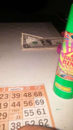 Its a little dive bar that also has bingo and black jack. The staff was very friendly and helpful. We didnt play black jack, but it looked like they have two tables with one being open at the time we were there. Most bingo games were $1. They loaned us daubers at the bar so we didnt have to buy one. There was free chili that was very good. They also carry a wider selection of sodas beyond the usual setups offered at most saloons. The back door has 3 steps with no ramp, so not exactly wheelchair accessible. The front has to small step downs. I didnt see a ramp in the front either. There is a liquor store attached. One of the operates said they play bingo every day from noon to 9pm with a half hour break around 5 pm