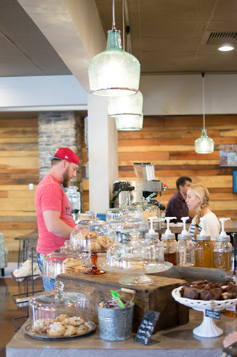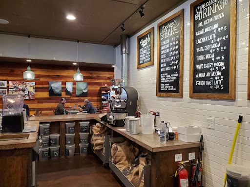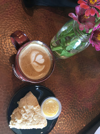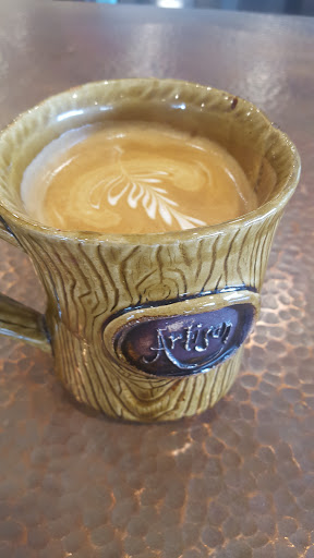 What a gem! Great coffee shop with in house roasted coffees, lunch menu and an assortments of breakfast bakery items. The scones are my favorite! Foo-foo coffees drinks available with a frozen option - my favorites are the Turtle and Almond Joy. Loyalty program available. Atmosphere is eclectic and unique. Features live music on various nights and local art for sale which is displayed on the interior. Great spot for small meetings and get togethers. You can snuggle up the cozy fireplace with your hot cocoa. Mugs are locally hand made and are large.