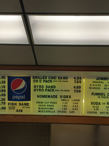 I love the fair style food they have. They have malt vinegar for the fresh cut fries as most fairs & carnivals do, fresh squeezed lemonade, funnel cake fries & humongous onion rings that are all cooked as you order. They have great grilled chicken sandwiches that are always on sale Monday & Tuesday for $2.29 which isnt bad for a real piece of grilled chicken. Wednesday & Thursday they have gyros for $2.29. And if you like regular bone-in chicken wings you must try the original wings... A little spicy but not hot & very tasty!