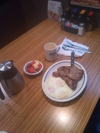 Akron,Ohio.I recently made my second visit to IHOP with my 15 year old son. He was with me for the first visit as well where we used a giftcard from Christmas. I was impressed with the organization of the staff from managers to host. Huge crowd both seated and waiting at around 10:15am on a Saturday. We were seated,served beverage,ordered,served a delicious hot breakfast,refilled beverage,check,togo boxes and cashed out all within an hour. Portions are generous and price is as expected for the amount of food served. Team is pleasant & professional. Bus Attendants were on top of their duties. Its a 20 minute drive for us but well worth it! We had the Country Fried Steak which is served with hash browns,two eggs& two pancakes. Four choices of syrup. The Butter Pecan is out of this world♡