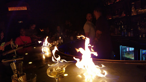 Excellent cocktails. Bar staff was awesome. The tricks to entering are really cool and the best part is that the guests inside are watching you try to enter on video and cheering you on. It builds a great way for the whole bar to chat and interact with each other which is very fun in this type of setting. Extremely small and intimate - seating maybe for 20-30 people at most. Very dark and very period decor. This theme is well executed and we had a terrific time. Great cocktails but no food makes it tough to stay long (but that might be the point!). Cocktails are not cheap but they give you what youre paying for!