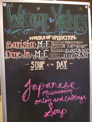 It was my boyfriends birthday and I wanted to take him somewhere different. I decided on VIRTUES cause from the menu on there website and there selection I was really excited. We arrived at the restaurant and the ONLY down side to it is its....well put together but cuts its self short with the tables only! We sat down and felt a little disappointed at the table setting but figured we would still try it out! First we got the tomato bail bisque...It was WONDEFUL....side salad was yummy too. We both got the Surf N Turf and the Filet were the best I have ever had. The lobster was also good. Butter didnt taste like real butter but it still did the justice! Potatoes were REAL! and the asparagus was Yummy! Everything there was really good. I WAS VERY IMPRESSED! We left will full tummy and smiles! It kinda catches you off guard but def try it out. The place was VERY CLEAN and the staff was very friendly. The waitress also knew what the suggestions were as if she cared! I recommend anyone to go there...The prices were reasonable for the QUALITY of food...AND THE CRAB CAKES WERE TO DIE FOR!!!! Hope you check it out I am glad I did!
