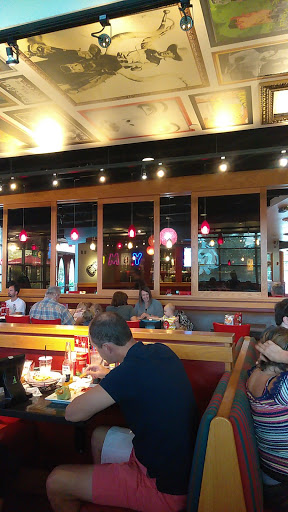 Red Robin franchise, which means a wide variety of taste-tickling burger combos, the famous "bottomless" French fries, and numerous beers and other beverages on tap. Only drawback is, it is exceedingly noisy - a loud room, populated by families with kids - bless em! And popular, too - theres frequently a 10- to 20-minute wait for a table. But theyve retired the costumed Red Robin, which (who?) was once a great kids attraction...