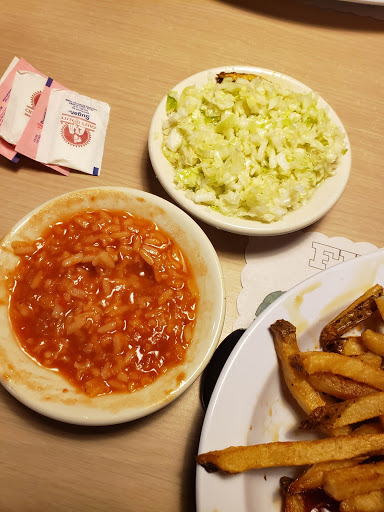The booths are so narrow its hard for a big person to get in and out of. I love their liver and onions.
