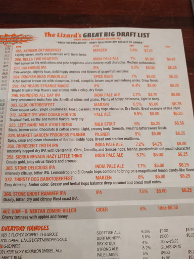 This is a good lizard for families, dates, bromance sporting events, and those who like "patio fireplacing." Mon and Tues are pizza/wing specials, and Wednesday is the 1/2 rack baby back rib special. Hand wipes included on messy orders like Ribs. Thursday is the burger special. Great selection of beers and gratis popcorn is a nice touch. Bartenders know their stuff. The Original House Salad with shredded Corned beef is a hidden gem. BBQ sauce is tasty on ribs, fries, and wings. Good small pizza specials and I go with toppings of onions, black olives, jalapenos, and pineapple. The WHITE pizza is also good. Malt Vinegar available. Bar gets loaded for sporting events. TVs are nice and large though sometimes I dont care to watch. Good music playing.