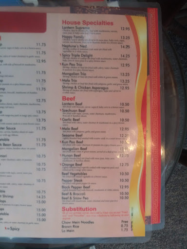 I love The Lantern. Its our favorite Chinese restaurant. The food is excellent and the staff and owners are very friendly.