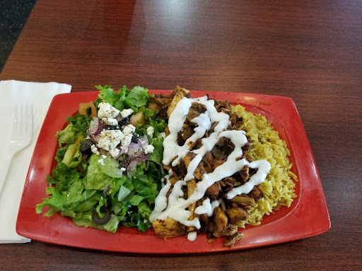 Great Mediterranean food. Get the chicken platter with garlic sauce and rice. Just trust me on this one.