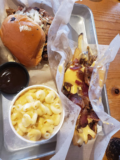 This place does not deserve its four star rating. I got two pulled pork sandwiches for a friend and I as well as two orders of fries. The buns were soggy, meat was very fatty and lacked flavor, and the fries were limp / soggy. I couldnt get more than half way through my sandwich because of how much fat it had in it. My friends sandwich had two bones in it even which is a choking hazard. Overall one of the worst BBQ restaurants I have experienced. I really hope I dont get sick...
