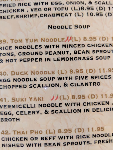 My husband didnt get chicken in his drunken noodle dish and it was to spicy. Theres no spice level like other places. My pad Thai was really pink and too sweet. Definitely nothing compared to sweet mango. Also over priced.