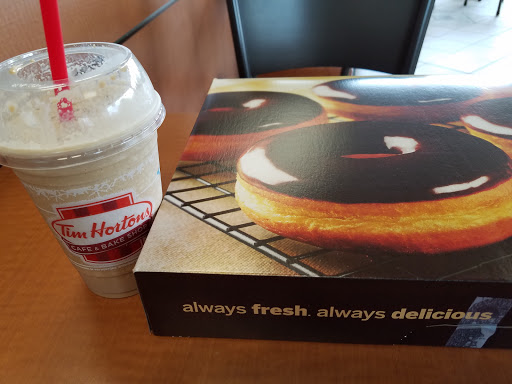 I love Tim Hortons! Their sour cream glazed are my favorite donut! Their long johns and fritters are also excellent. Fruit explosion muffins are great too. Their coffee is pretty good too. I prefer the dark roast. This particular location always seems to be very busy, but the staff is always excellent and youll never wait in line long.