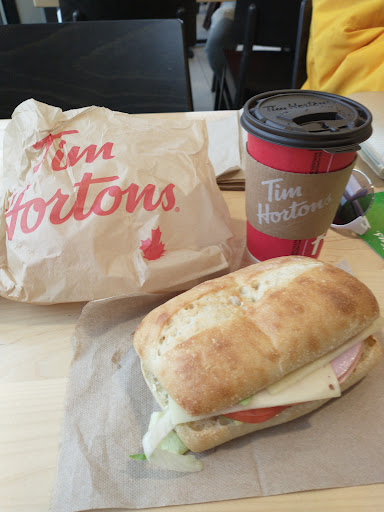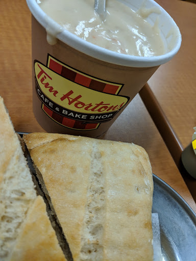 Locals love this place!Staff is one of the best in town.Easy to order if youve never been to a Tim Hortons lots of their items are viewable at counter.Potat soup is a popular one in winter months.Drive thru line is almost always into the street in the am but they move it quickly.The Paninis are great.Always busy & friendly.