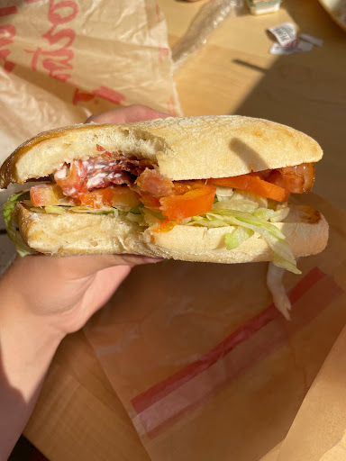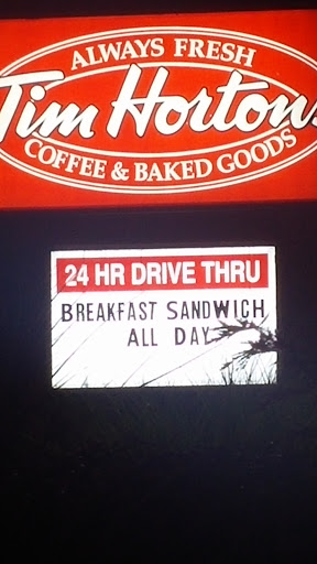 I had never been to a Tim Hortons before. Not knowing what to expect I entered and was pleasantly surprised to see you order everything at the counter and then seat yourself similar to other fast food establishments. At 10:30 p.m. they have a limited menu however the turkey bacon club sandwich and potato soup was very tasty. I then tried a strawberry vanilla donut that was so good I bought another. I would definitely recommend and I myself will go there again.