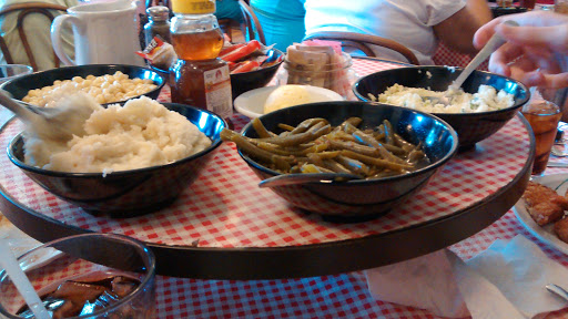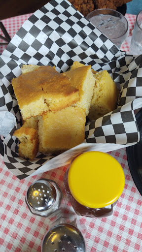 Huge let down. Complementary salad and dressing was basic but perfectly fine. Coleslaw was great, but I question if it was homemade. I say that because the green beans, corn, and mashed potatoes obviously were not. The fried chicken was good, but largely indistinguishable from KFC, which I like on occasion. Fish was fine, but nothing I couldnt do myself at home. The legendary corn fritters were basically hush puppies - sweet fried dough. I liked them, but they were very heavy and couldnt stand to eat more than one, especially on top of every thing else. Cherry cobbler was awful - canned cherries or entirely pre-made. The "Conutry Store": was an amateurish joke. I love the building, but when I want KFC, Ill go to KFC. The did serve gourmet soda, which I wish more places did. But they need serve some actual recipes before I will go back - and thats a shame because I would prefer to patronize local businesses.