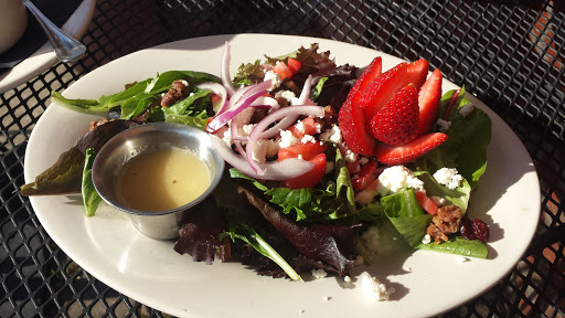 My husband and I frequented this place and gave it many chances because the owner is a really nice guy and their food is great. However, when "The cat is away, the mice will play". The staff is inconsistent when the owner isnt in. You can definitely tell. On a good day youll get the regular staff or the owner working. However the kitchen staff is sooooo slow! Last straw was a 20 min wait on appetizers that came out cold (shrimp and vegetable skewers) and 40 min for our entree and their excuse was the place was busy. Busy eh? I look around and there are empty tables and no one sitting in the patio area.. Ive seen busier when theres a live band and have never waited this long. We had a clear shot of the kitchen where we were sitting and the kitchen staff was busy talking amongst each other most of the time. Time management was horrible. Ineffective management. Anyhow, I recommend the breakfast here, salmon entree and any of the burgers. Stay clear of the shrimp skewers. I hope they upgraded to better quality shrimp for the price. With that said dont come super hungry and be prepared to have patience to wait just in case you get a staffer who acts as if they just did not want to be at work that day.