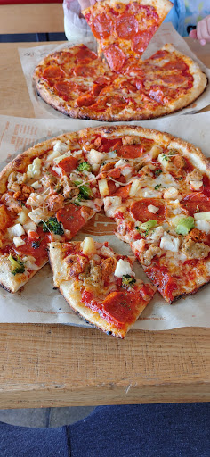 The pizza was good I like that you have so many options my friends and I did have to wait in line for a long time like 45 min to an hour and when we got up there the lady said youll have to wait we have orders called in we have to do so we had to wait again. I went through the line cashed out and waited for my pizza and was watching the lady cut my pizza . She cut my pizza and slammed the cutter down on it like she was mad and threw half of my toppings off and she picked my pizza up with her bare hands and was moving it and touching the toppings . Thats disgusting . Love the pizza but it seems like they do have some things to work on !