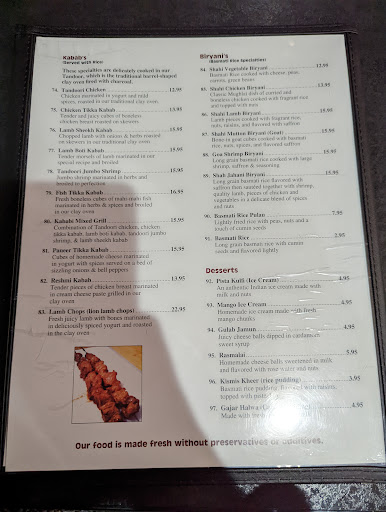 Excellent Food and service. The owners are wonderful people and run a high quality, clean and friendly establishment. I wouldnt eat Indian food anywhere else! The Garlic Naan is amazing!