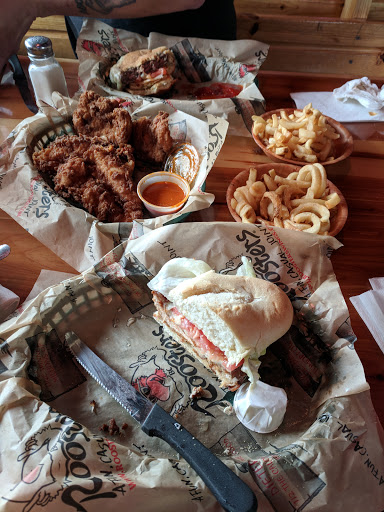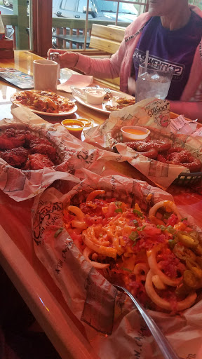 Good food in a sports pub setting. We like their boneless, skinless chicken wings and their turkey burgers for a lighter calorie dinner. Love their Roosters chips and nacho cheese dip. Mini corn dogs are a favorite.