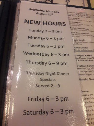 Bluebird feels like a gem of a family owned, biscuit and gravy, comfort food, breakfast lunch & dinner diner. This is America from a play by William Inge or something like it nearly unchanged in decades. Bluebird has has opened early and closed early for years, but they are experimenting with late night on weekends. It is a treasure.
