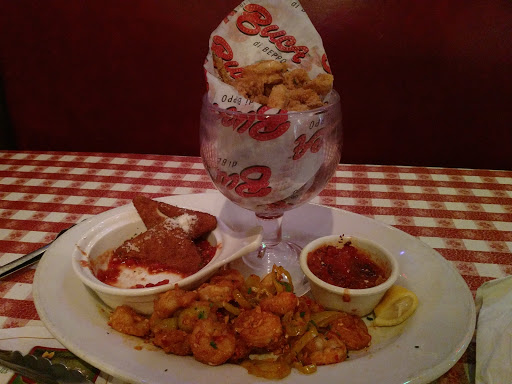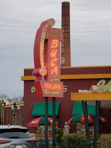 Im slightly torn between 3 and 4 stars, but Ill give them the benifit of the doubt. If youre wanting that nice romantic candlelit italian place... this is not that. If youre looking to have a good time with a group of friends and gourge yourself on lots of good food, then this is more up your alley. Bucas is tacky. Striaght up in your face kitsch tackiness. They do not try to hide it... ever. Im not really sure what color the walls are as there are crazy pictures of Italian celebrities and random junk (like bowling plaques) covering darn near every square inch. Theres also crazy Italian music playing; think Musak in Italy. Its loud its big, you can seriously get lost. They have a kitchen table literally in the kitchen. They have no problem offering tours through said kitchen either. The alcohol selection is good and the food selection even better. Yes. Its pricey. You will pay for extras, like a side of marinara or extra sauce when the kitchen skimped on the sauce for the Fruitti de Mare to begin with, but the food is oh so delicious! And they offer tons of choices! from pork to beef to chicken to marina to alfredo to vinegar sauces. All family style, so go with at least 3 people unless youre planning expensive leftovers. If youre planning on going on a weekend, you should call ahead for a reservation. This place does take parties and lots of them. Even if youre coming with 4-6 people, it might be worth it. Its really hit or miss with getting a table honestly. You can always stroll around the mall too if its going to be a wait.