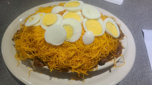 Like most iconic, greasy spoon places, this can be a frustrating experience. Whats with the crazy parking lot with its maze like traffic flow? Lots of tables waiting to be cleaned. But wait: the food is worth it all. Cincinnati-style chili (tell your server if youve never had it on ordering advice) and dont forget to order onion rings for the table first thing. Now accept plastic. Addictive.