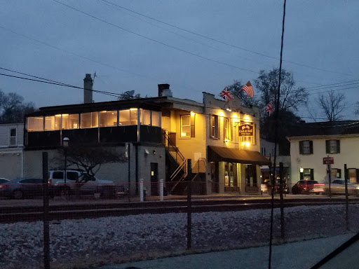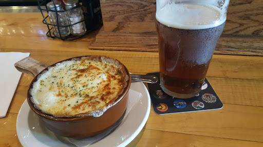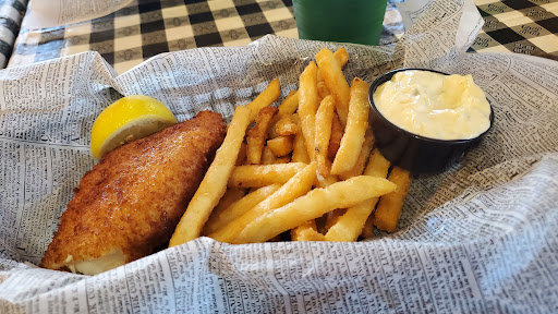 After spending about 30 mins trying to decide what to eat for dinner on a Thursday night with no specific cravings for anything. My boyfriend agreed to try here, I had been here once before over 5 years ago. We decided to eat upstairs outside on the patio. Even though the train tracks are right next to the building and the trains horns our loud I liked the views and nice night weather. My boyfriend ordered the sweet potato waffle fries that came with a maple sauce for his appetizer which he really liked. Then followed that up with the 12 ounces of cod fish which came with two sides, he ordered the mac and cheese and a salad. It was a lot of food. I had the bangers dip, which was just okay and a glass of Riesling. The food is reasonably priced and the waitresses were both friendly. It was pretty quiet there, only one or two tables of patrons on each level indoors and on the patio. I was surprised to see that they stay open until 2am. Maybe it was a slow night since it was drizzling outside, we were there around 9pm. I would definitely go back here again. Since I am from London though, I had hopes of more pub like food. I had thought they would of at least had bangers and mash.