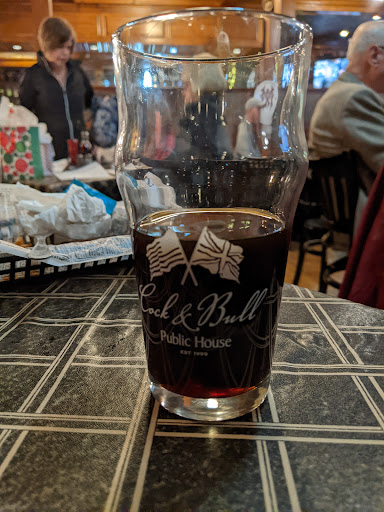 The food was great. Give the zero stars for service. We were traveling to Cincinnati on business and really just wanted to have some food and drinks because we had driven five hours and our hotel was not the greatest in their franchise. We sat down to lunch our waitress was very frustrated that the tiny dining room was 3/4 full. Noticing that she was busy, when she got our table tried to order our drinks and food at the same time, both ordering the awesome fish and ships. She was annoyed by this and said other people had sat down before us. She was not the kind of waitress that writes anything down which may have been part of her problem with handling six tables at lunch. Later that night we just decided return to the cock and bull for dinner Instead of go to some chain restaurant or head downtown. We just wanted to go someplace warm, close and easy to hang out in. When we sat at the bar the bartender scowled at me and demanded to know what we wanted and if we like needed menus. I thought that maybe she didnt like me because I had bothered to dress up and look nice for my boyfriend because sometimes female waitresses dislike serving women. She was pretty rude and basically ignored me in favor of talking to my boyfriend. Little did she know I was going to be paying the bill that night. After we had ordered and I got a glass of $8 wine in dirty glass ( lunch wine glass was gross too), she began huffing and puffing about how they were going to close early to the other customers, put a rude closing at 9pm! sign on the front door, started turning off the lights and pushing in the chairs by dragging them across the floor very loudly. Message sent! Which is really what you want when you just get your food at 8:30pm. There was light precipitation of melting snow on outside not a blizzard. One of the other employees that went out to smoke came in the front and yelled party of 12 to mess with this chick. So they cared little for the existing customers experience. We felt really ignored and pretty much antagonized to leave. When I threw my card down on the bar and she heard it, she said are you ready to go? I said well yeah, obviously from the monument we came in you have shown us that you want to leave work early and dont want or need us to spend anymore time or money here. She looked all shocked and said that she had never told us that and kept arguing. It is really awesome to pay for the privilege of being treated like that while I try eat food in a "public house" because I cant cook in my hotel room. Also, I need to a remember that a restaurant is all about what people who happen to be working there that day want. It isnt about how a tired, hungry, traveler willing to pay people to cook for them desires to end their day in a pleasant way wants. It was only a Monday! If you just cant possibly handle people on a Monday, stay closed. Food was great though. See ya Cincinnati.