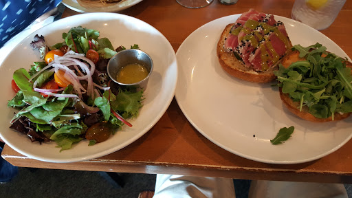 I am stuck on the sesame encrusted tuna with the risotto cakes and green beans - I mean haricots vert. It is consistently delicious! They have a nice selection of beer and wine. When the weather is nice, sitting on the patio listening to live music is very pleasant.