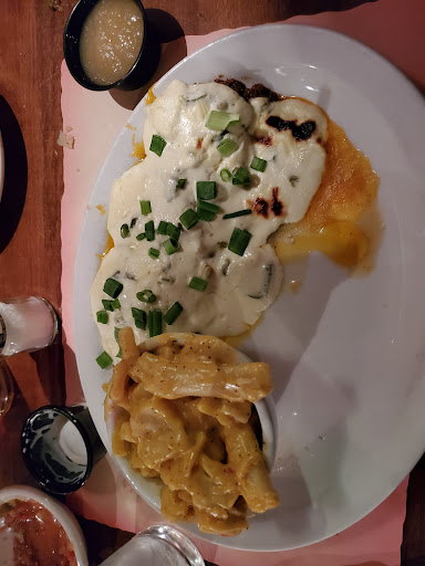 I started working there as a cook and I couldnt do it past the second shift. coming from someone whos worked in at least 10 different kitchens I can tell you that you do not want to eat anything here nobody washes their hands nobody wears gloves and the quality and preparation of the food is garbage and unfortunately I wish I could say that I was being over-dramatic but literally if you saw the disgusting kitchen you would say the exact same thing. sure it might be normal for kitchen staff to smoke cigarettes while theyre flipping steaks and drinking beer. you would think all the kitchen manager that would put a stop to something like that but no hes the one doing it LOL. the front of the house on the other hand is unique and the building itself is quite interesting. the owner? the cliche grumpy old man that NOBODY in there likes. the onion straws sit inches from the most appalling and filthy ceiling tiles with dust and grease hanging down over them. this place is a dump dont eat here I dont even think a coyote would eat here.