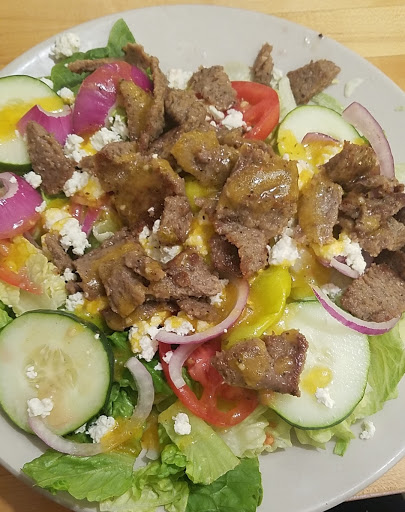 Greek diner feel. I come here for lunch (to go or take out), and I generally get a Greek Salad with added chicken or gyro meat.