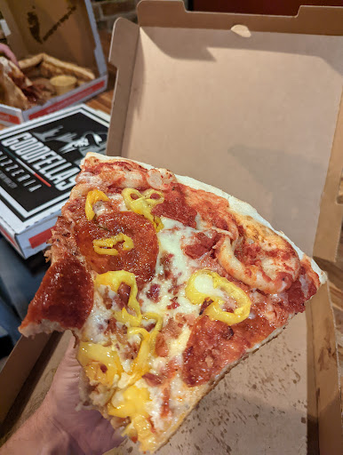 Great pizza, and I especially like the Calzones. They are absolutely massive and full of cheesy goodness. I enjoy sitting at the upstairs bar and ordering over the more family friendly downstairs. The late night staff is super friendly and has even done custom by-the-slice orders for me!
