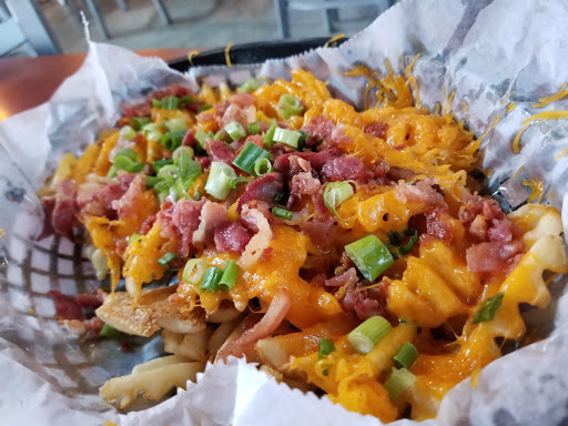 Great potato skins, but very loud because the music is loud so everyone talks louder.